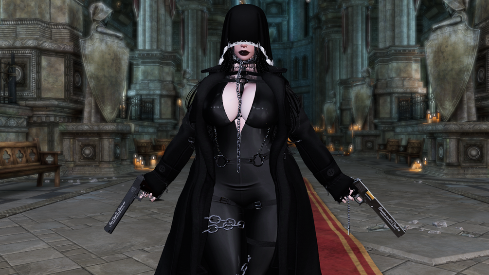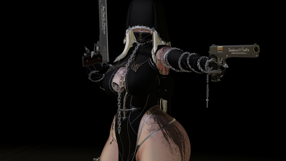 - Multiple clothing options: Trenchcoat, dress, latex dress, bodysuit, gloves, stockings, heels, boots, mask & hood, chains, accessories, casual outfit (shorts, bikini, crop top)